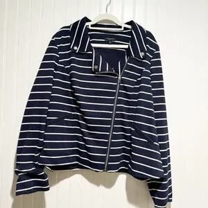 Lane Bryant Navy Striped Moto Jacket Plus Size 24