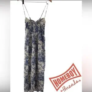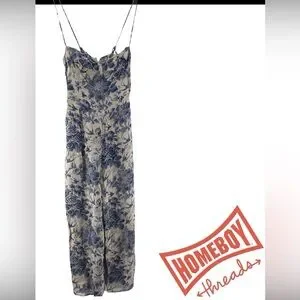Reformation Cream and Blue Floral Jumpsuit