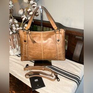 NWOT Frye Melissa Leather Medium Crossbody Satchel Beige Brown Retail $328