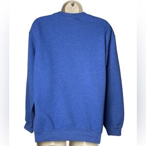 Cozy blue sweatshirt featuring a vibrant sunflower design. Perfect for casual wear.