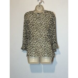 Y2K 90s David Warren New York Leopard Print Silk Blouse Top Open Front Size 16