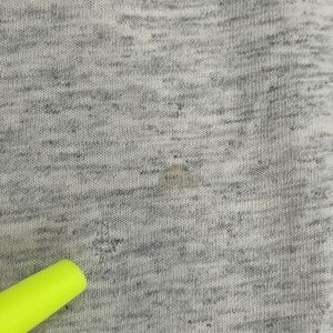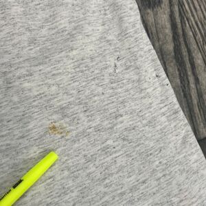 Has a few small pin holes and a few small spot stains and slight distressed collar.