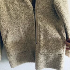 Elizabeth and James Cream Teddy Sherpa Jacket - half zip style - size small - great condition! Suede-like interior - 100% polyester