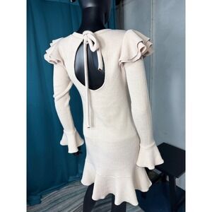 Keywords: SAYLOR, Free People, Ruffle Dress, Bell Sleeve, Knit Dress, Mini Dress, Open Back, Party Dress, Casual Dress, Bohemian, Beige Dress, Small Dress, Women's Dress
