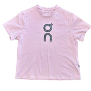 Women’s On pink/purple logo graphic T-shirt. Medium. On Clouds/ On running New