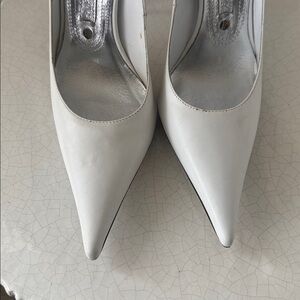Step out in style with these elegant white stiletto heels. Perfect for any occasion, these shoes offer a sleek and sophisticated look.