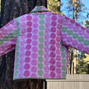 This stylish kids quilted jacket features a playful pink and green design, perfect for adding a pop of color to any outfit. Ideal for keeping your little one warm and fashionable.