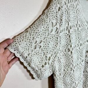 VTG 90s Crochet Top Silk Cotton Knit Button Up Short Sleeve Shirt Plus Size 2X