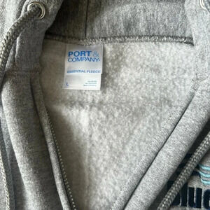 Port & Company grey hoodie, size L. This is in excellent used condition, no rips tears or stains. Does have a company logo on the front that can be covered up or left