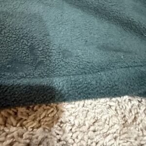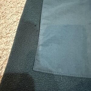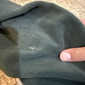 Shows wear with small white marks/paint-like spots on the fleece front and near the hem (see photos) and a tiny pinhole on a front woven panel. Light general wear to fleece from use. Zippers function properly; cuffs and hem intact.