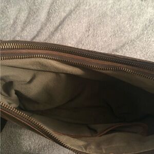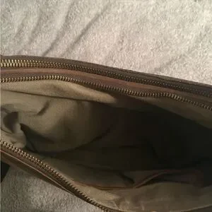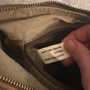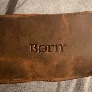Born Shoulder Bag/ Purse. This purse has one side zipper pocket, with an open pocket in the back. Two separate zipper compartments, 2 small pockets in first compartment, second compartment has a zipper pocket inside. Adjustable shoulder strap. Purse is distressed, 100% leather, inside is 100% cotton. Purse has some wear, but still has a lot of life left. Perfect for everyday use, purse feels well made.