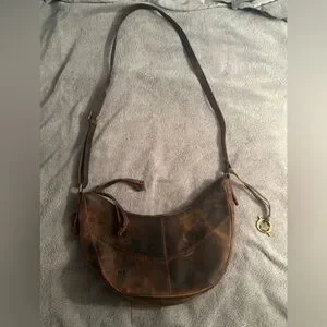 Born Brown Leather Hobo Distressed Shoulder Bag Purse Y2K