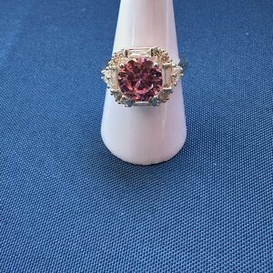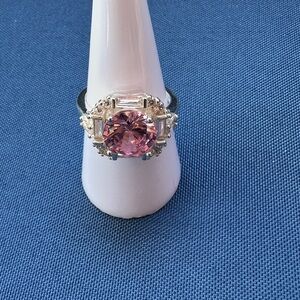 925 Italy Sterling Silver Elegant Pink Stone Silver Ring Size 8