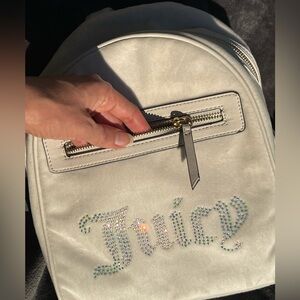 Juicy Couture velvet backpack. Ivory w/rhinestone logo. Ivory. NWT. Great gift.