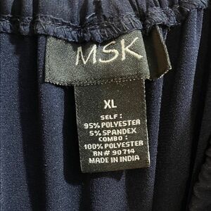 MSK Jumpsuit Off Shoulder Rhinestone Trim Cape Popover Woman's XL Navy Blue. Dressy Party Formal Wear. Pull on. Very dressy. The fabric is a polyester/ spandex with a chiffon overlay cape. Excellent condition.