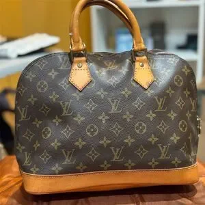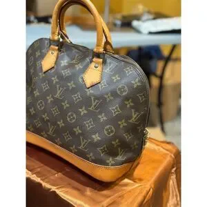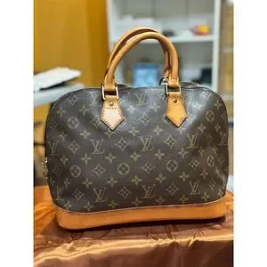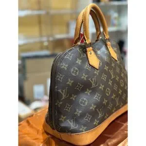 Keywords: Louis Vuitton, Monogram, Alma PM, vintage, satchel, top handle, brown, gold-tone hardware, medium bag, pre-owned, authentic, classic style, luxury handbag, women's fashion, versatile accessory.