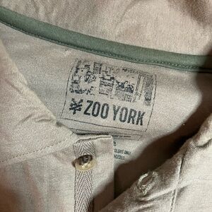 Casual khaki shirt with button-down design. Features dual chest pockets. Ideal for everyday wear. Some discoloration in some areas. Please see pictures.