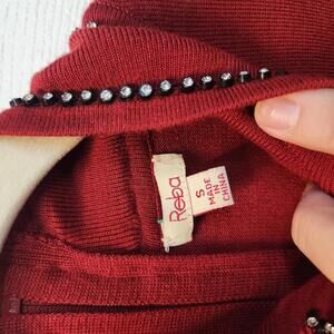 Reba Women's Long Sleeve Red Mock Neck Sweater w/ Rhinestones Size S
