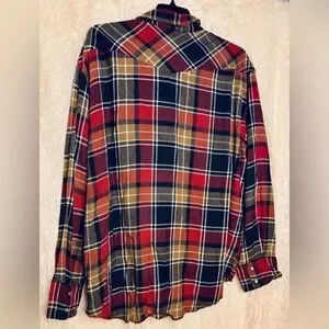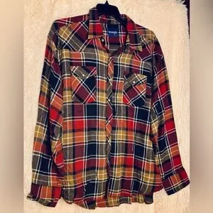 Wrangler Men's Red and Brown Plaid Button Down Shirt