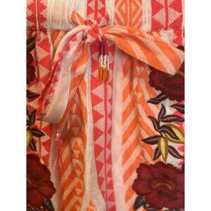 FARM Rio Anthropologie Red Embroidery Rose Printed Shorts Small Elastic Tie