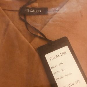 Chic open-front draped jacket in a stylish tan/saddle color.