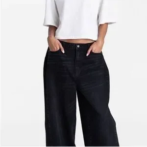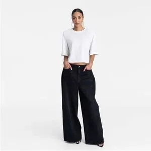 All drama, no effort. The Rachel Jean balances bold proportion with laid-back confidence. Crafted from vintage-inspired black wash premium denim, it features an exaggerated, wide leg silhouette with inverted side pleat seam. The low-rise fit and semi-distressed hem add a relaxed, lived-in finish. Pair with a tucked-in tank or classic baby tee and finish with sleek sneakers for an easy cool look.