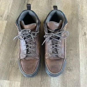 Red Wing Truhiker 5 inch Safety Toe Boots in brown, size men’s 11.5. Great preowned condition with light peeling to the back heel. Minor dirtiness/wear to the tread.
