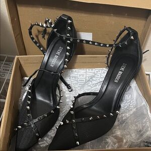 🦋 NWT STEVE MADDEN Lupton Stylish Black Studded Heels 9