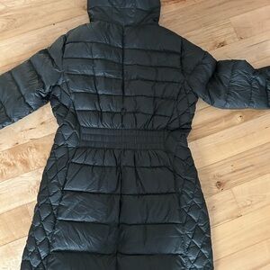 Elegant quilted design with a cozy hood. Perfect for cold weather. Stylish and warm.