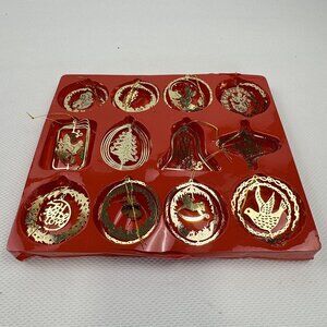 Vintage 12-Piece Brass Christmas Ornament Set Intricate 3-D Cutout Dimensional