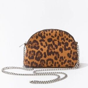 Stylish leopard print crossbody bag with a chic chain strap. Perfect for adding a wild touch to any outfit.