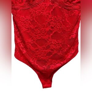 Red Lace Sleeveless Thong Bodysuit - Medium - NWOT
