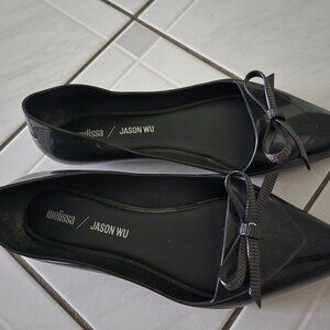 Melissa x Jason Wu pointed toe flats. These are black with a bow detail. They are a size 8.