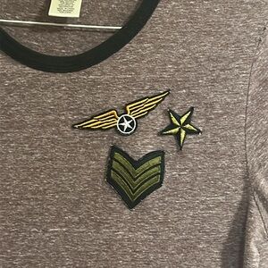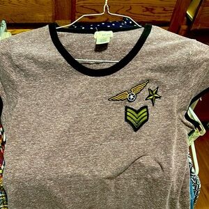 Wet Seal Women’s Purple-Gray T-Shirt with Embroidered Patches Size Large