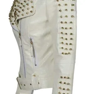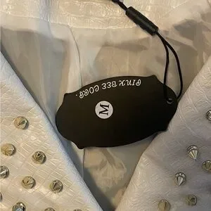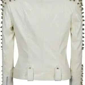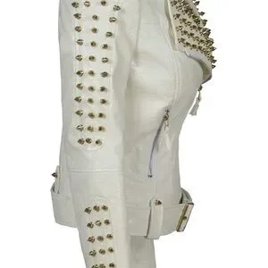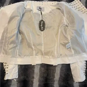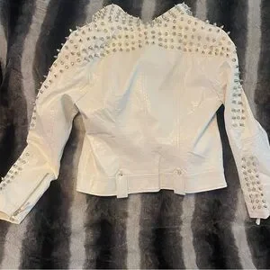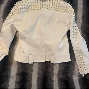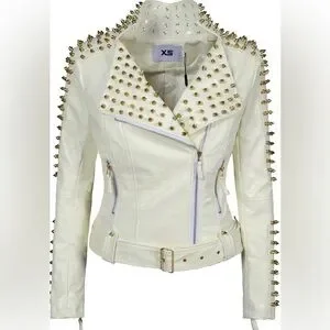 NWT SX Women Faux Leather PU White Jacket Studded Rivet Fashion Jacket Size M