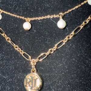 Chic double chain design with RL charm. Adds elegance to any outfit.