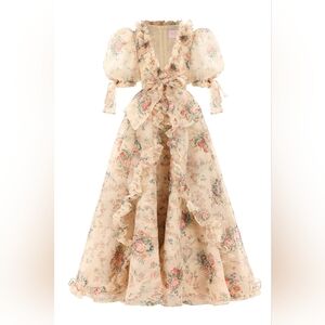The Garland Marie Gown features over-the-top sleeves, a whipped cream ruffle hem and three layers of luxurious pleated skirt. The skirt is designed after Marie Antoinetteās famous curtain style gowns, which open in the front. With a nod to the values of transcendentalists, who revered nature, our Garland print celebrates the intricate beauty of botany and horticulture. Imagine tumbling through the grass of Louisa May Alcottās Orchard House in the indigenous shades of the landscape.