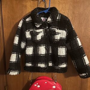 Falls Creek Black and White Fuzzy Plaid Jacket Size XS 4 to 5 Years
