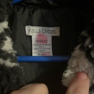 Falls Creek - kids size 4/5 yr - Cozy black and white jacket - good used condition Always!