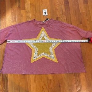 NWT Easel Mauve top with a large yellow star. Floral pattern inside the star. Relaxed fit