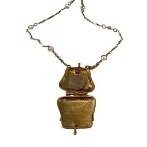 1928 Brand Vintage Gold Toned & & Clear Faceted Bead Purse Pendant Necklace.