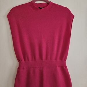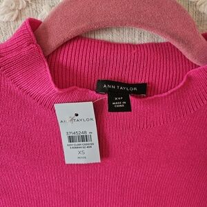 NWT Ann Taylor Petite Ribbed Blouson Sweater Dress Hot Pink Poppy XSP