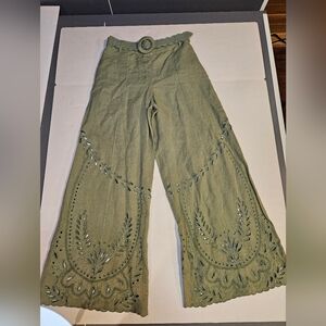 Hemant & Nandita Green Flared Pants W Embroired Belt Wide Leg W Eyelets Small