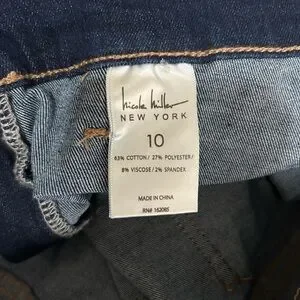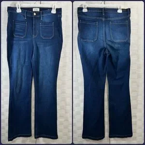 Nicole Mille New York. SoHo high rise boot cut jeans. Deep indigo color. Front pockets styling. Perfect for casual wear. Size 10 measures approx approx 15” across the waist when laid flat with 11.5” rise and 32” inseam. Very good pre owned condition.