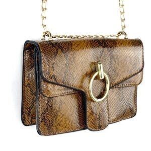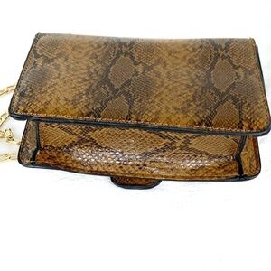 Brand new in packaging. Lovely Snake printing faux leather with premium gold metal accents.. Functional, fashionable, trendy crossbody bag with dual flap closure. Zipper closure under the flap for extra protection. Sturdy gold link chain/faux leather detachable shoulder straps which goes over the top of the bag.
