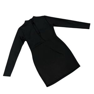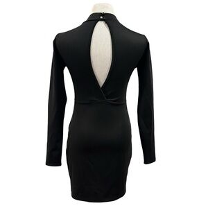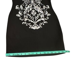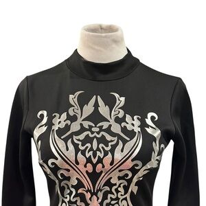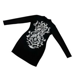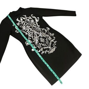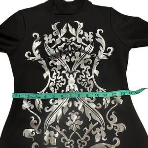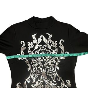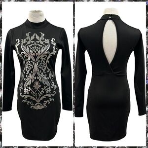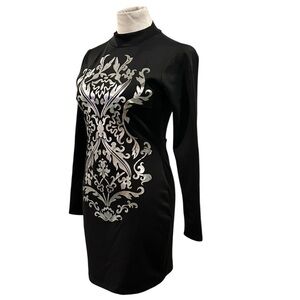 Forever 21 Black & Silver Metallic Filagree Long Sleeve Midi Dress - Size Medium
