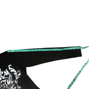 Forever 21 Black & Silver Metallic Filagree Long Sleeve Midi Dress - Size Medium. Great condition. Measurements are shown in the 11th - 15th photos.