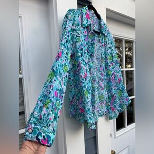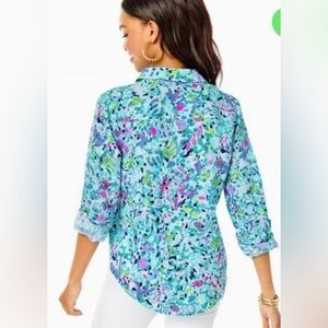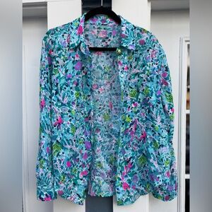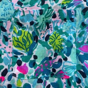 Lilly Pulitzer Sea View Linen Button Down Top In Multi Dive Bar, Size M