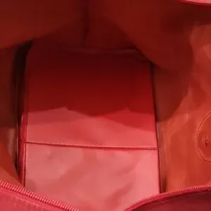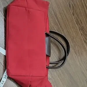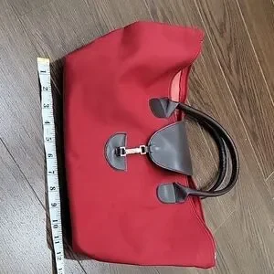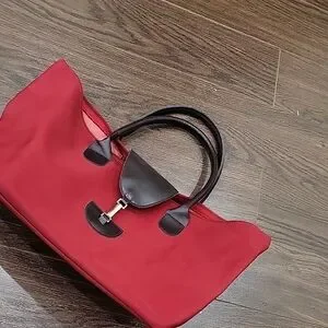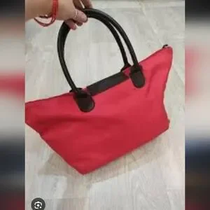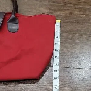 Bold red tote with sleek black handles and accents. Ideal for daily adventures.