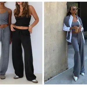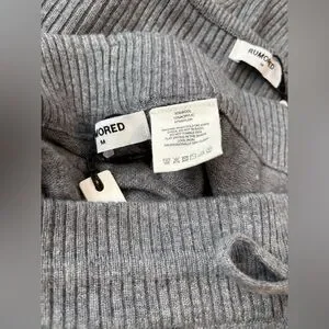 Rumored Wide Leg Knit Pants Two Piece Lounge Set In Charcoal Medium Size NWT